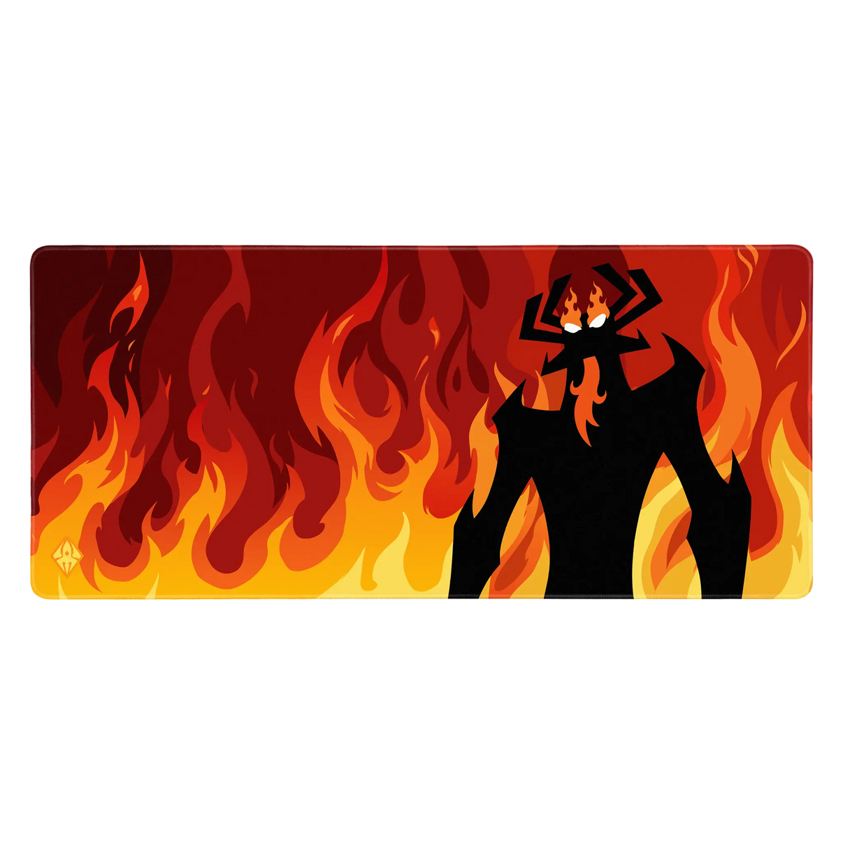 The Samurai Slayer mouse pad places a menacing silhouette at the center of a sea of flames, ranging from deep red to bright orange. Inspired by the iconic animation style of the classic Cartoon Network era. For anyone who wants their setup with a little more edge.